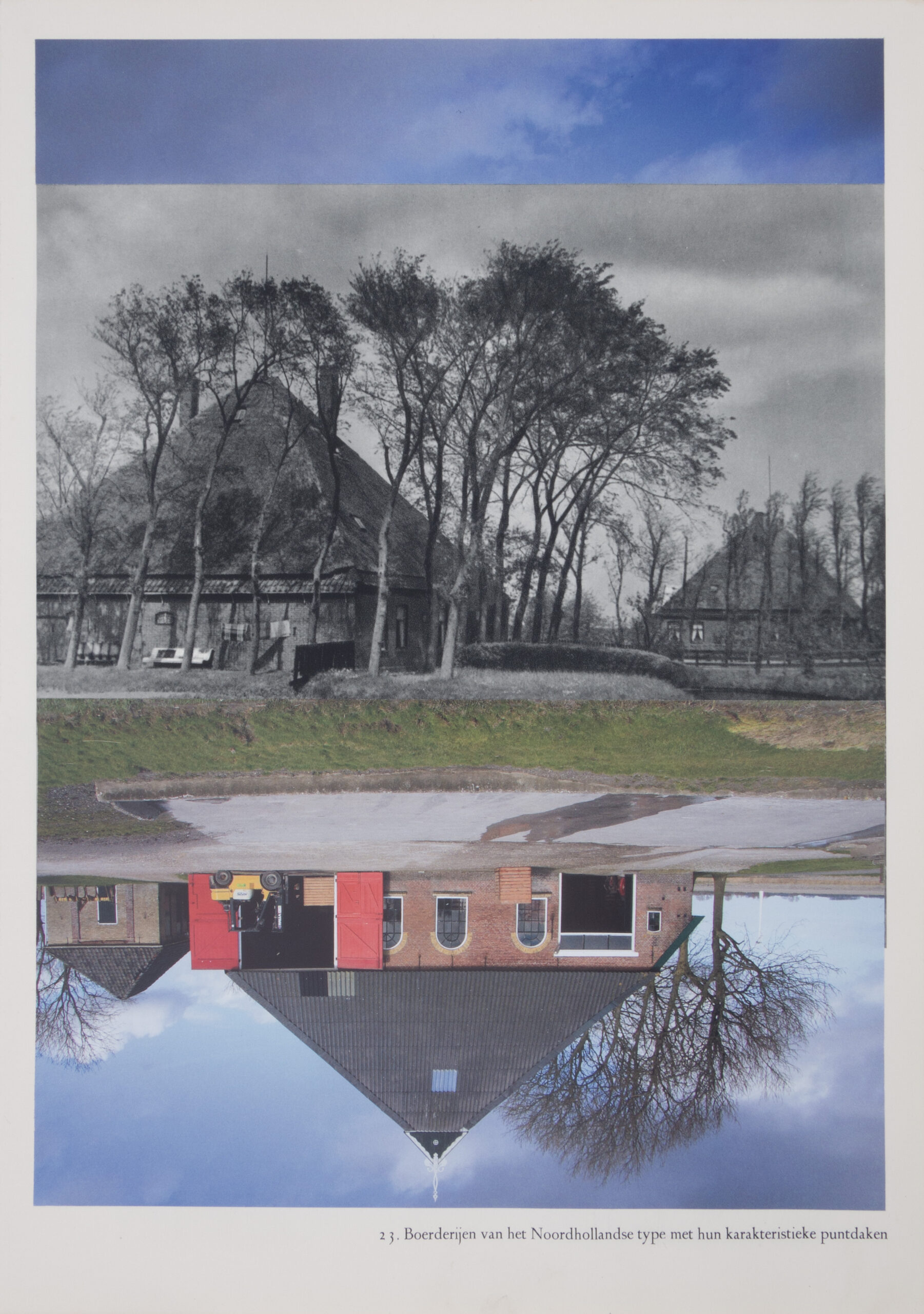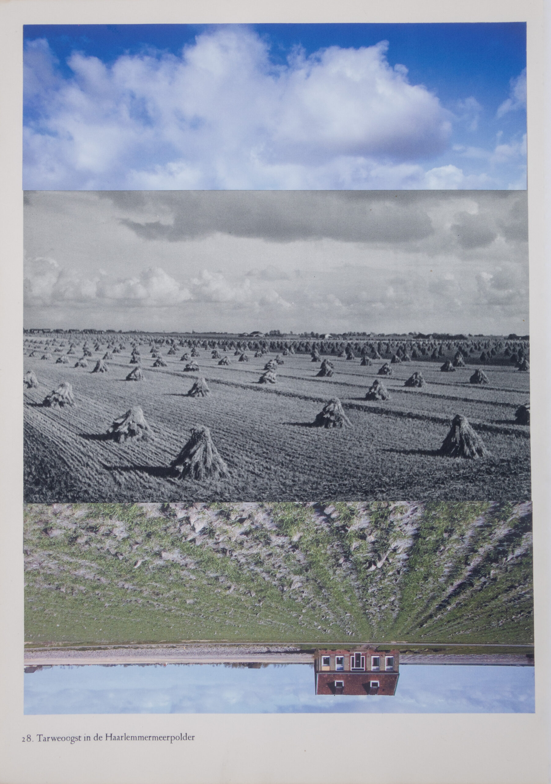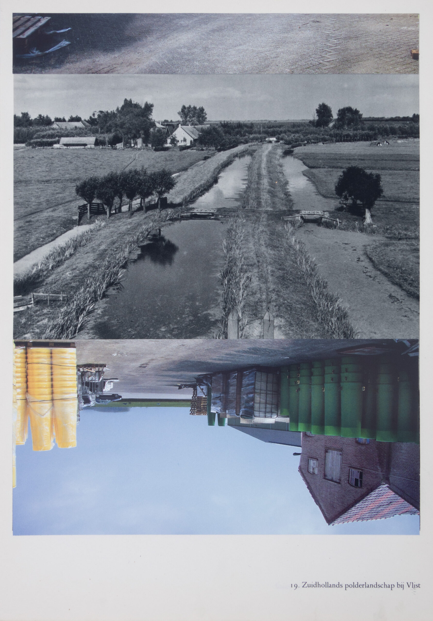 Catja Nieuwenhuizen voegt steeds een foto uit het ene boek toe aan een foto uit het andere. Deze twee foto’s voegt ze nauwkeurig samen tot een nieuw beeld. Het oude landschap in contrast met het nieuwe. Het romantische zwart-wit verleden wordt verdrongen door een kleurrijk heden.