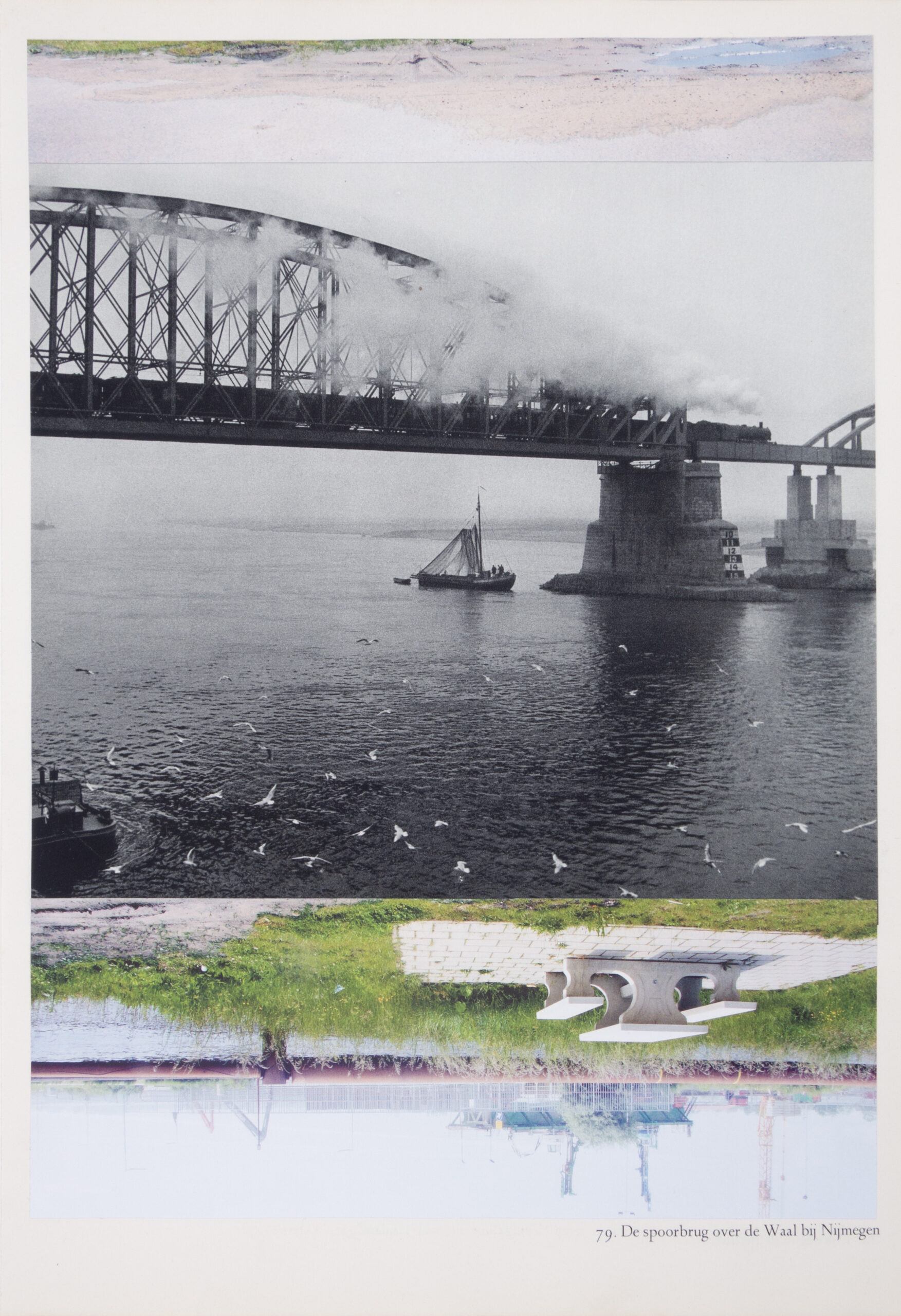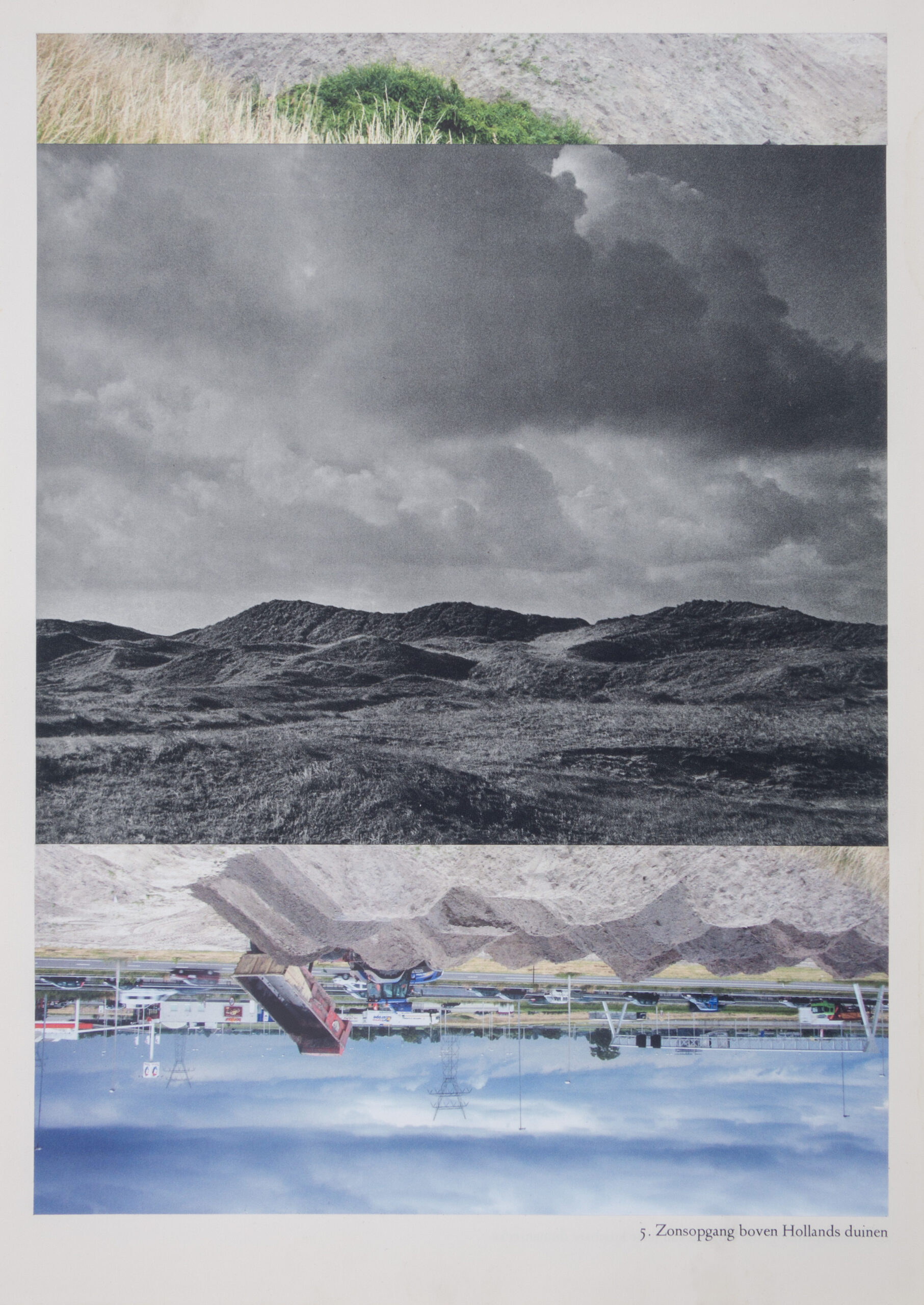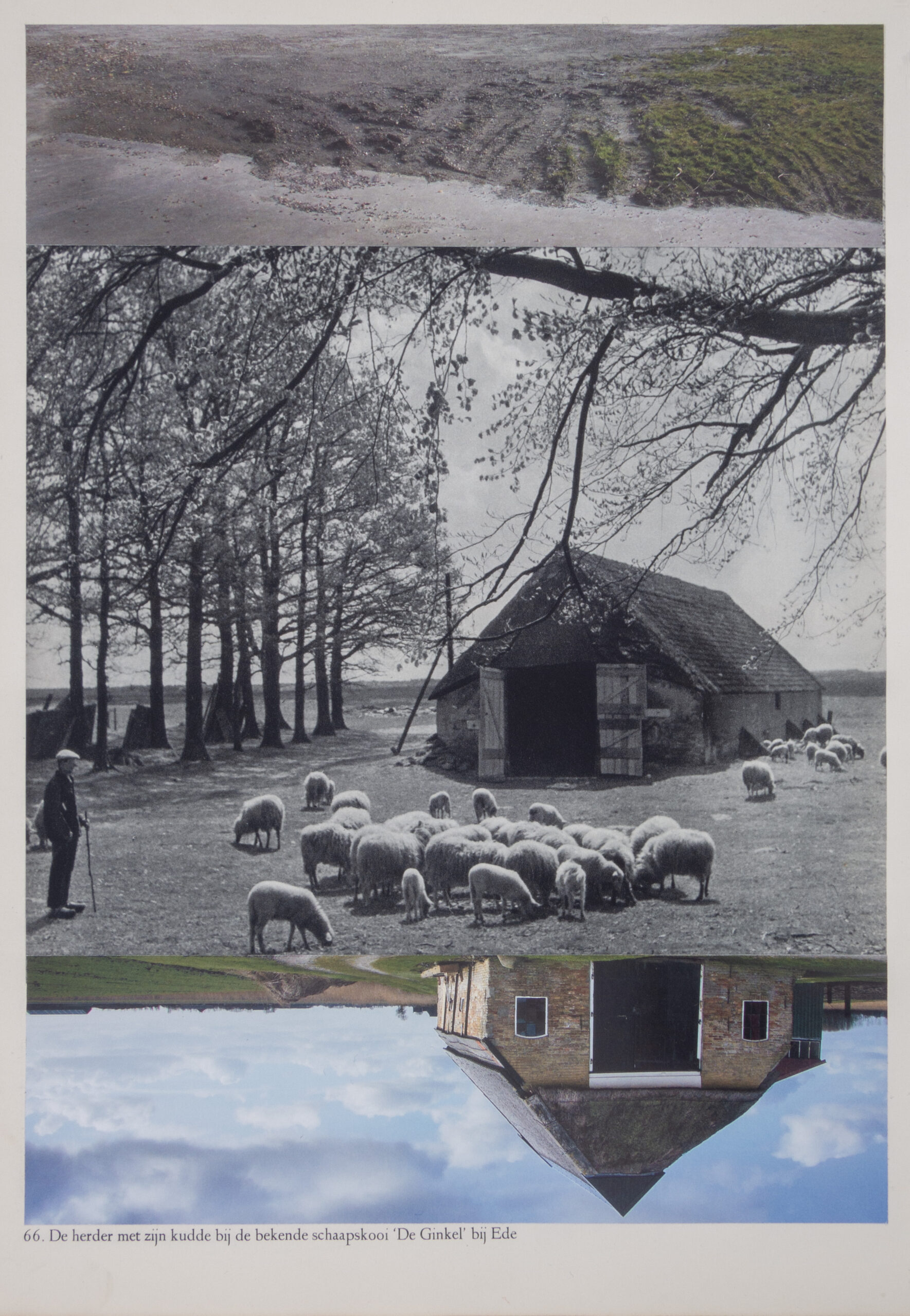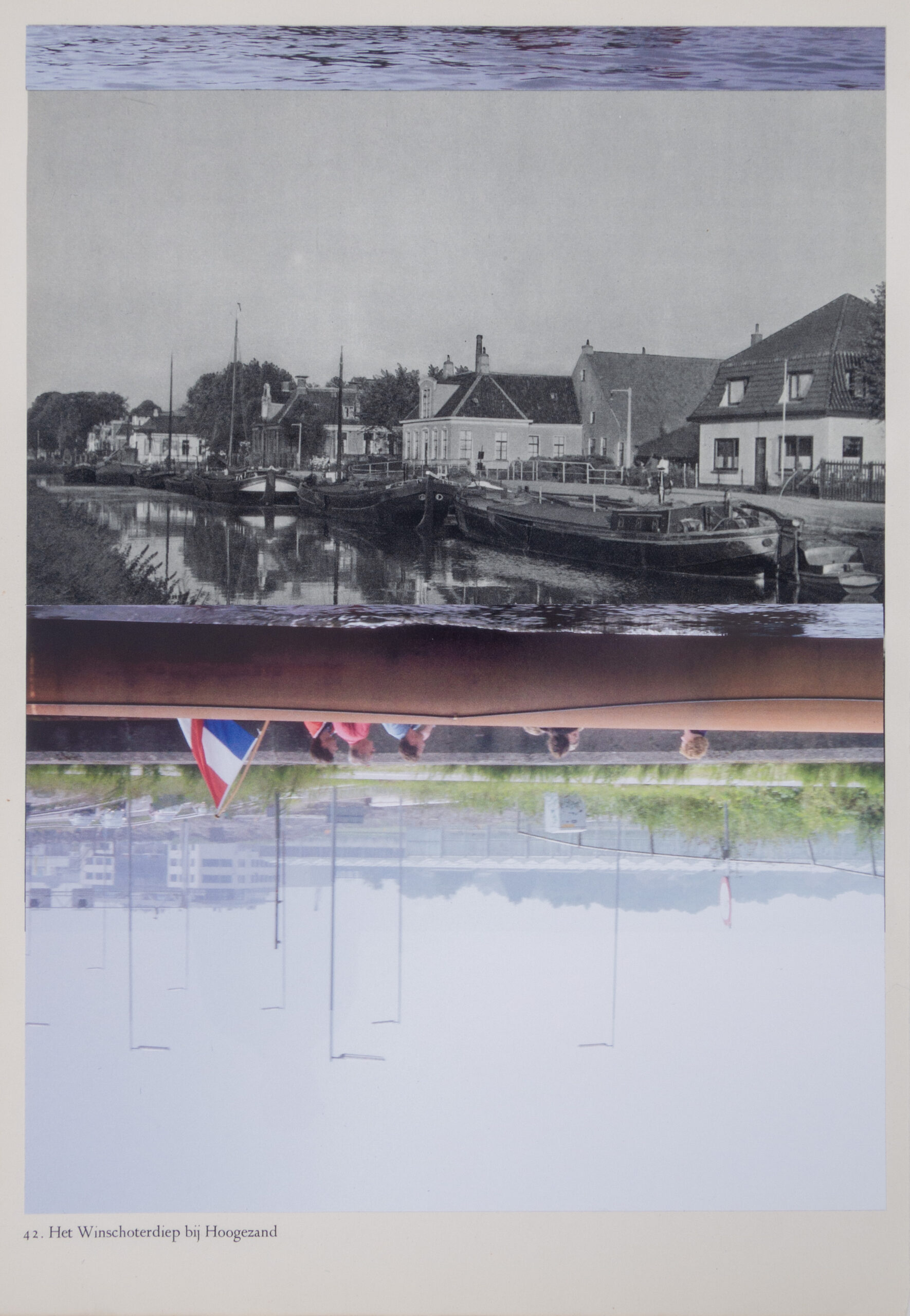 Catja Nieuwenhuizen voegt steeds een foto uit het ene boek toe aan een foto uit het andere. Deze twee foto’s voegt ze nauwkeurig samen tot een nieuw beeld. Het oude landschap in contrast met het nieuwe. Het romantische zwart-wit verleden wordt verdrongen door een kleurrijk heden.